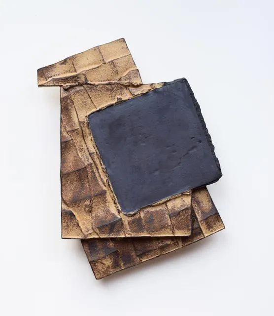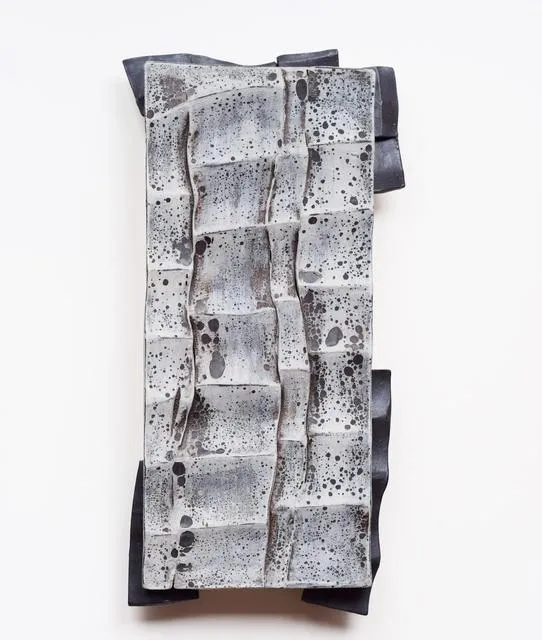 Jim GladwinMASS_4, 2021Anagama fired clay, earthenware props15 x 76cm -
